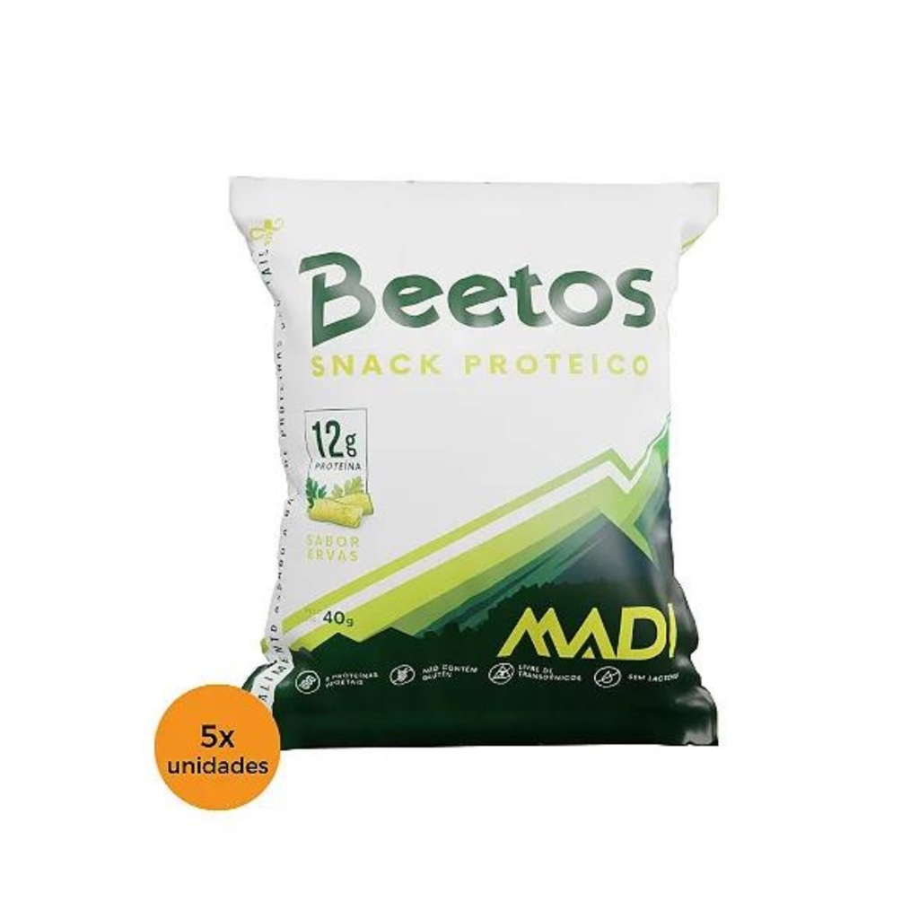 5 Unidades Snack Proteico Beetos MaDi Sabor Ervas 40g