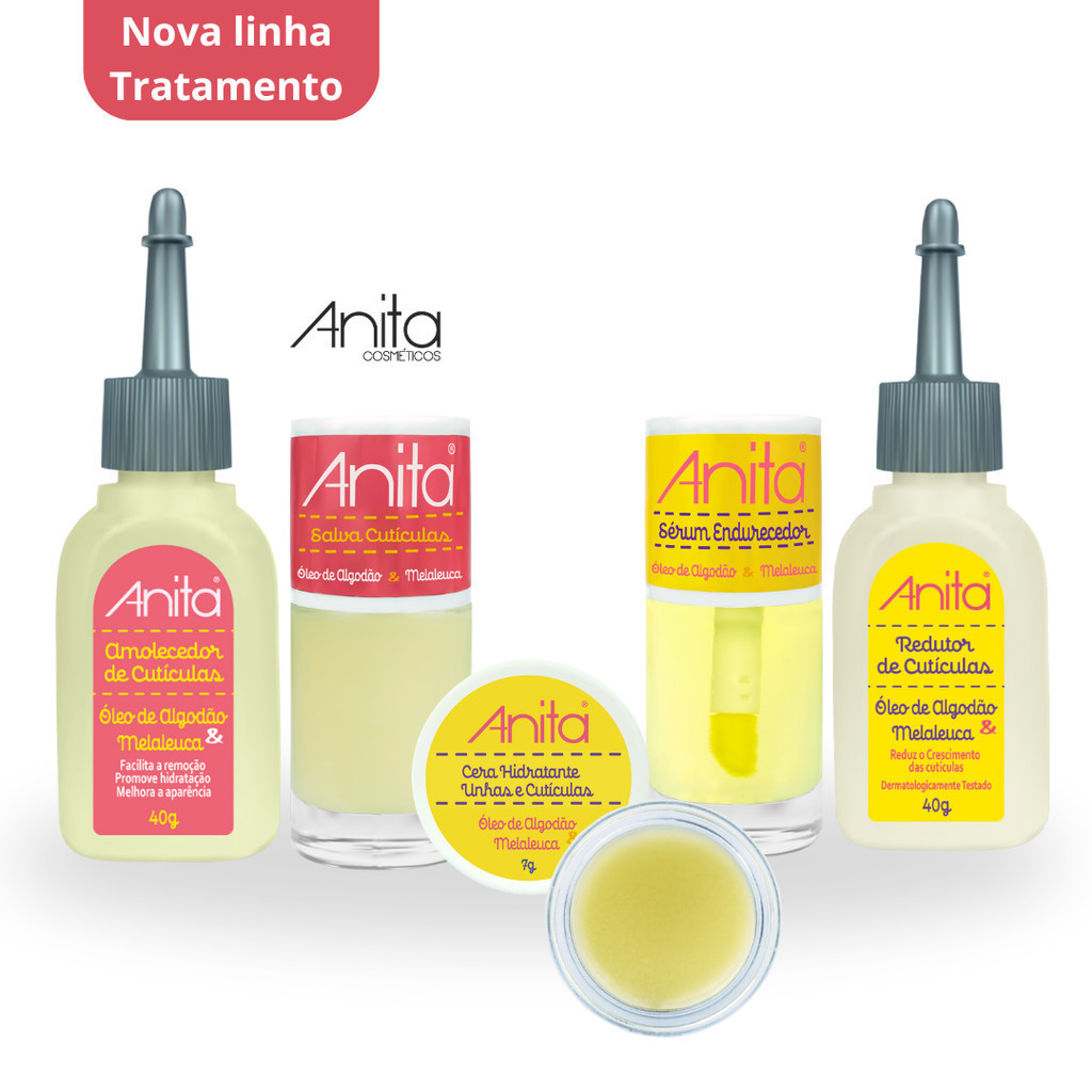 Kit Tratamento Anita - Base unhas de aço, Sérum fortalecedor, Hidratante de crescimento, Cera hidratante e Emoliente