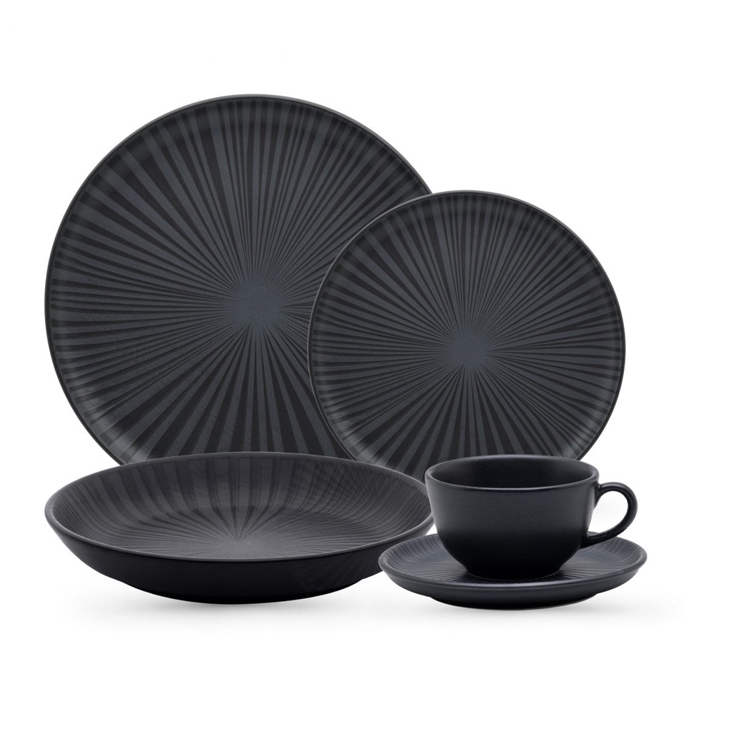 Aparelho de jantar e chá 20 peças ceramica preto, jogo completo
