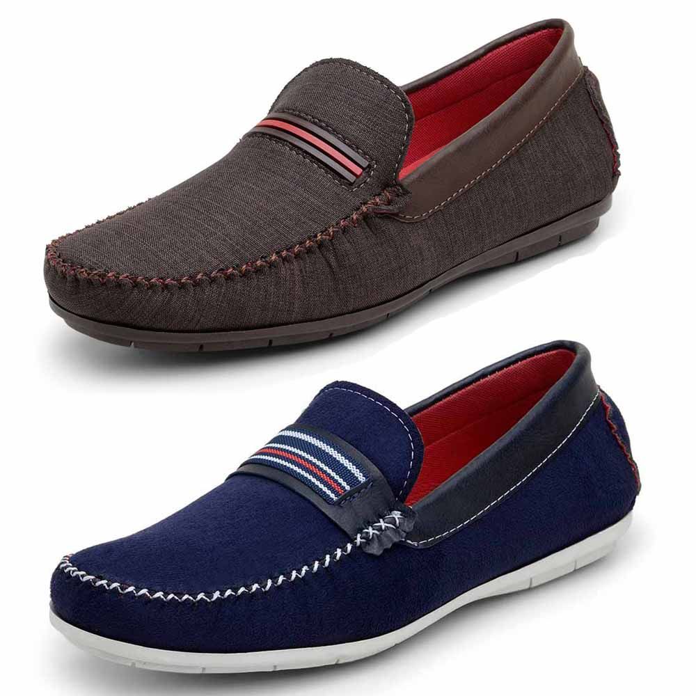 Kit 2 Pares Mocassim Masculino Casual OP Santos com Detalhes em Listras - Original - Nota Fiscal - Direto do Fabricante - Envio Rápido com Garantia