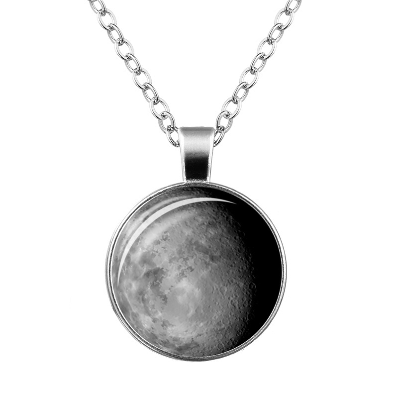 Vintage Galaxy Moon Glass Cabochon Pendant Colar De Vidro Prata Corrente Luminosa Para Jóias Femininas