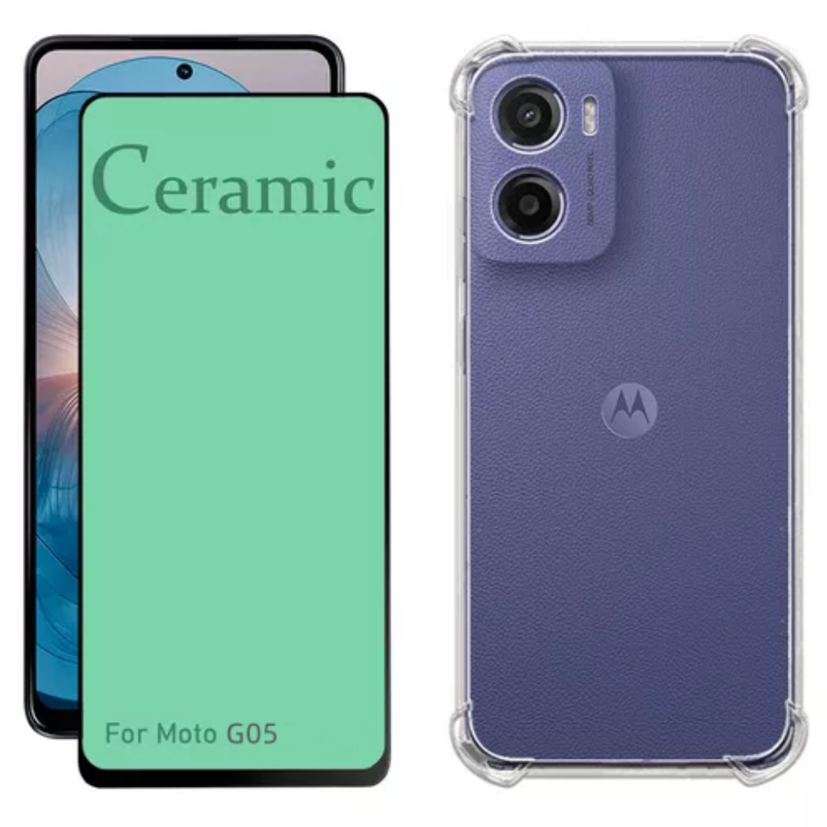 Kit Para Moto G05 Motorola - Película Cerâmica + Capa Capinha Anti Shock