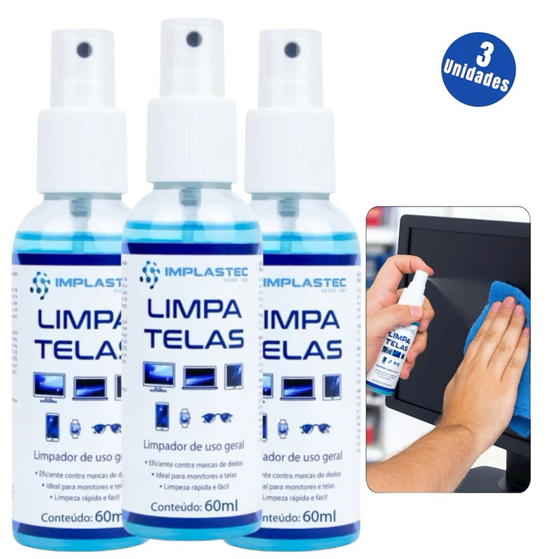 Kit 3 Limpa Telas Clean Spray 60ml Anti-risco Implastec ( Tv / Celular / Oculos / Relogio )