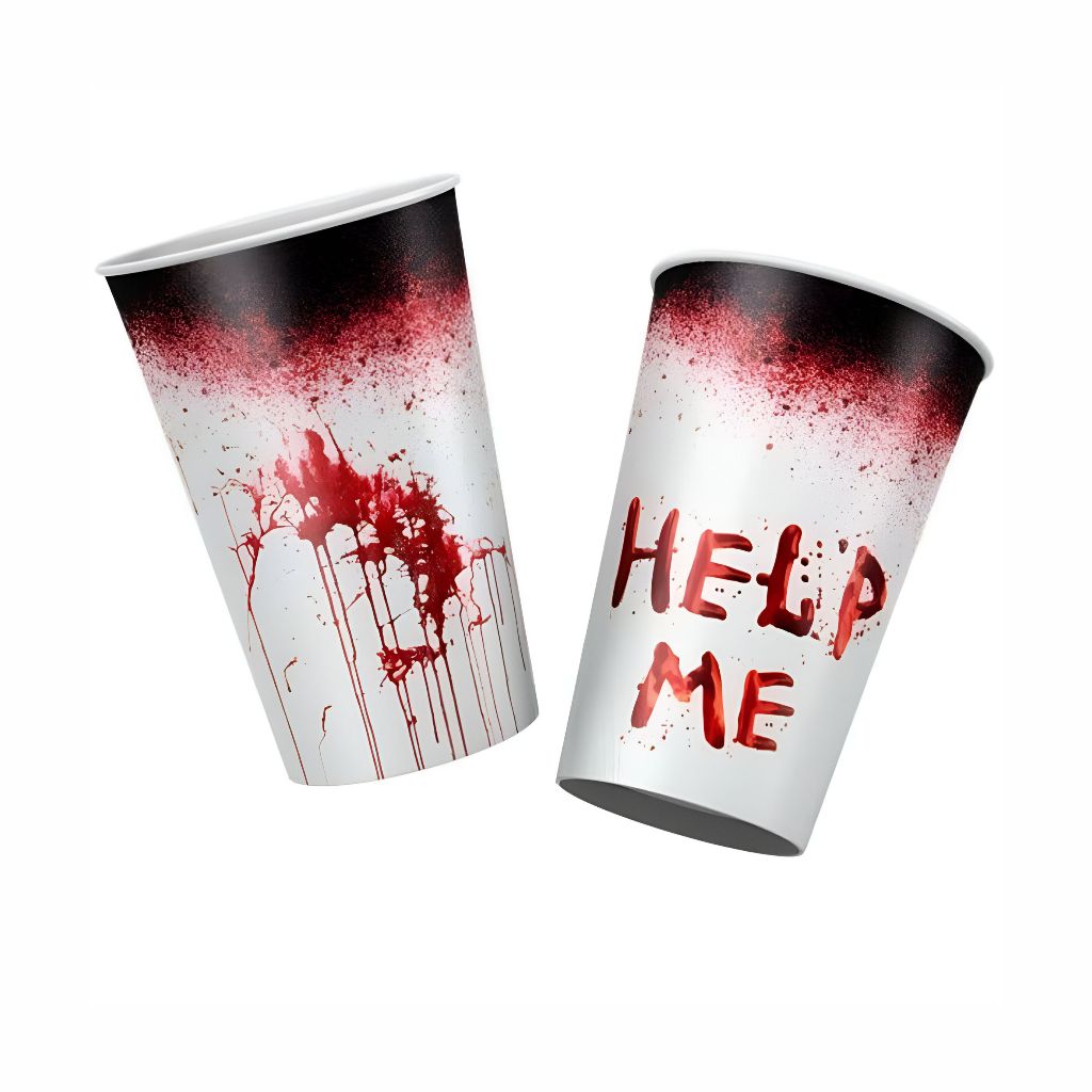 Copo de Papel 8 Unidades 180ml Personalizado Help Me Terror Festa Halloween Decoração Dia das Bruxas