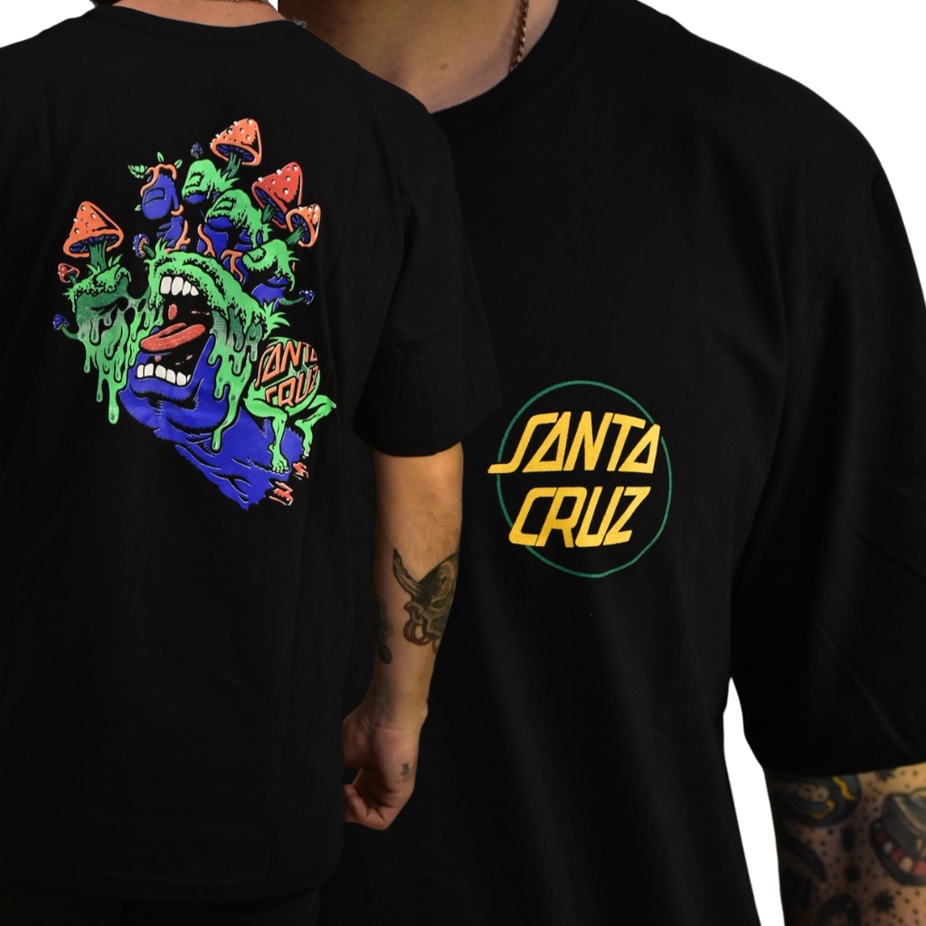 Camiseta Street Preta Estampada nas Costas da Santa Cruz