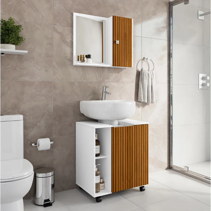 Conjunto Para Banheiro 1 Gabinete com Cuba e Espelheira Viso Tea Móveis Bosi