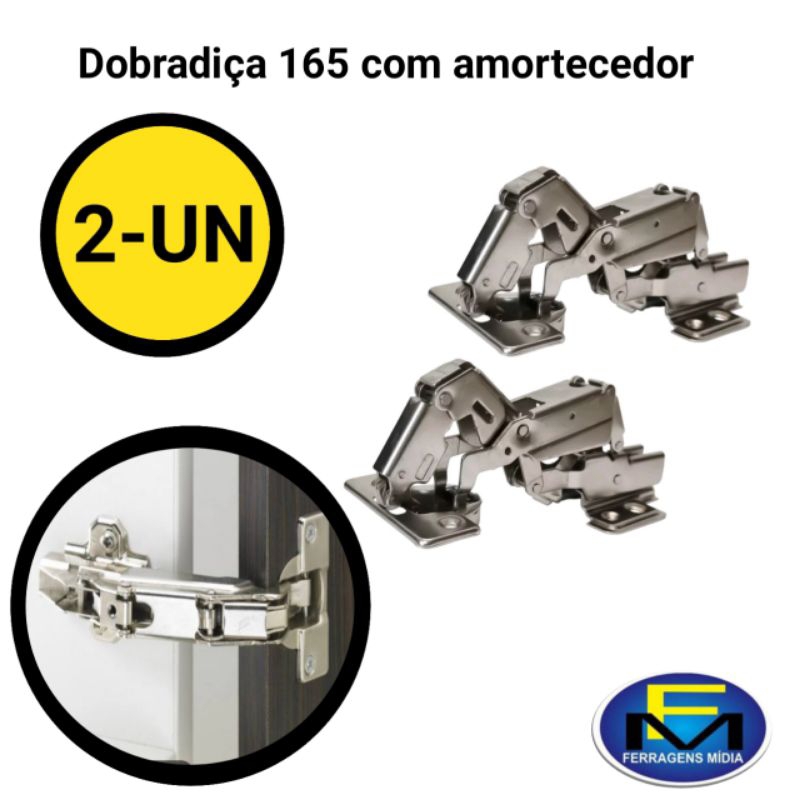 Kit 2 Dobradiça 165 Grau com amortecedor Reta ou curva