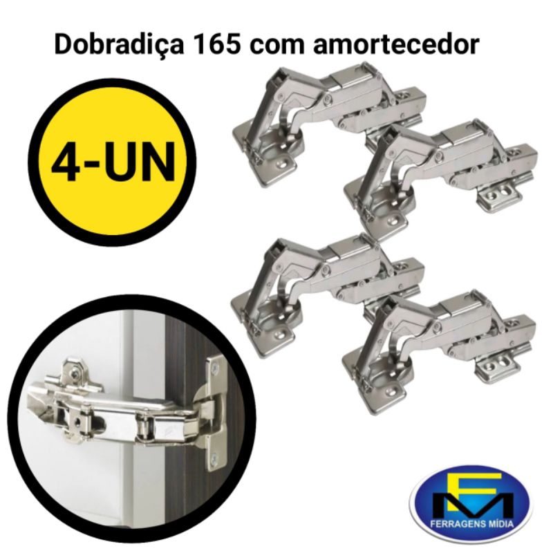 Kit 4 Dobradiça 165 Grau com amortecedor Curva ou reta