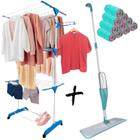 Kit Varal Inox Dobrável 3 andares c/ rodinhas + Mop Spray 3 em 1 c/ reservatório 400ml + Refil Extra Esfregão