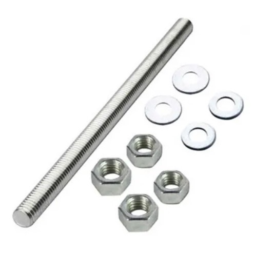 Kit 1 Barra Roscada Zincada 1/4 de 1 Metro C/ 4 Porcas E 4 Arruelas