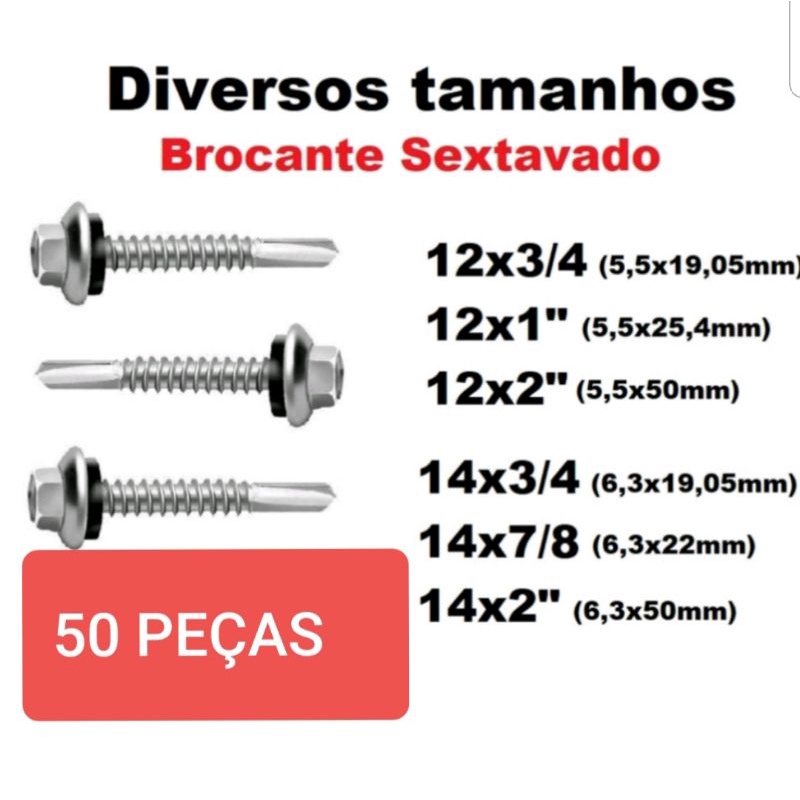 Parafuso auto brocante com arruela sextavado telha 12×3/4, 12×7/8, 12×1, 12×11/2, 12x2, 12x21/2 100pecas e 200pecas