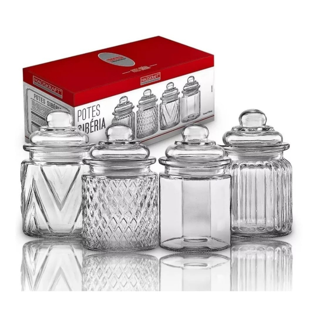 Jogo de Potes Siberia Vidro 300ml com 4 Peças - HAUSKRAFT