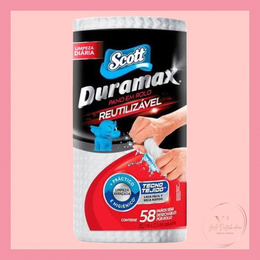 Pano Reutilizável Scott Duramax Branco - Kit 6 Rolos Total 348 Unidades