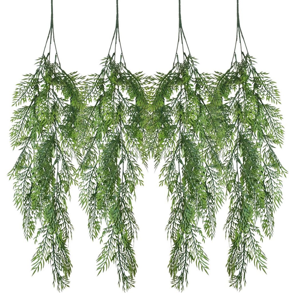 Kit Com 4 Folhagem Artificial Pendente De Bambu Toque Real