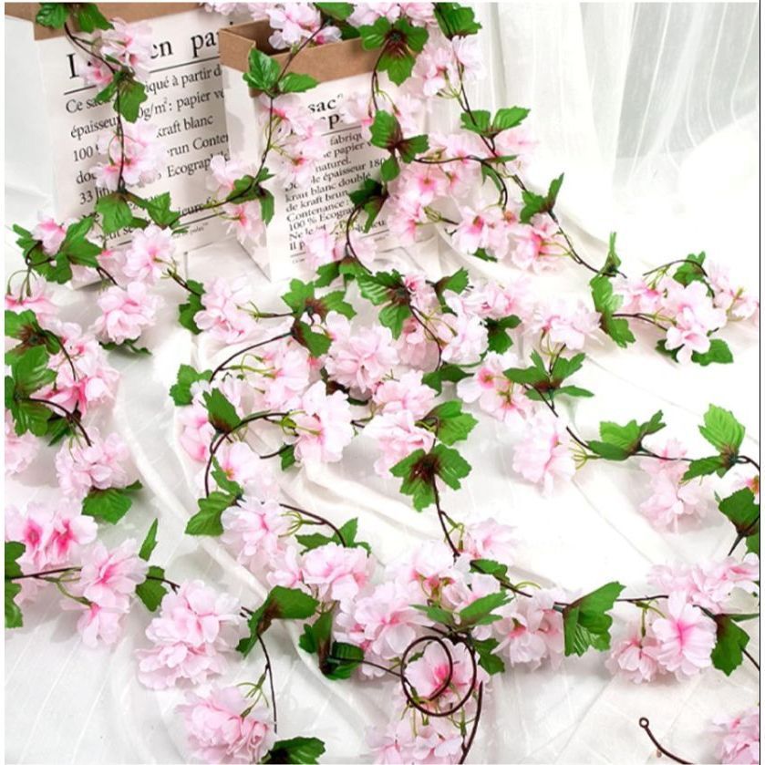 Kit 2 Folhagem Simulação Rosa Cerejeira Corrente De Flores Rosa 4 Metros
