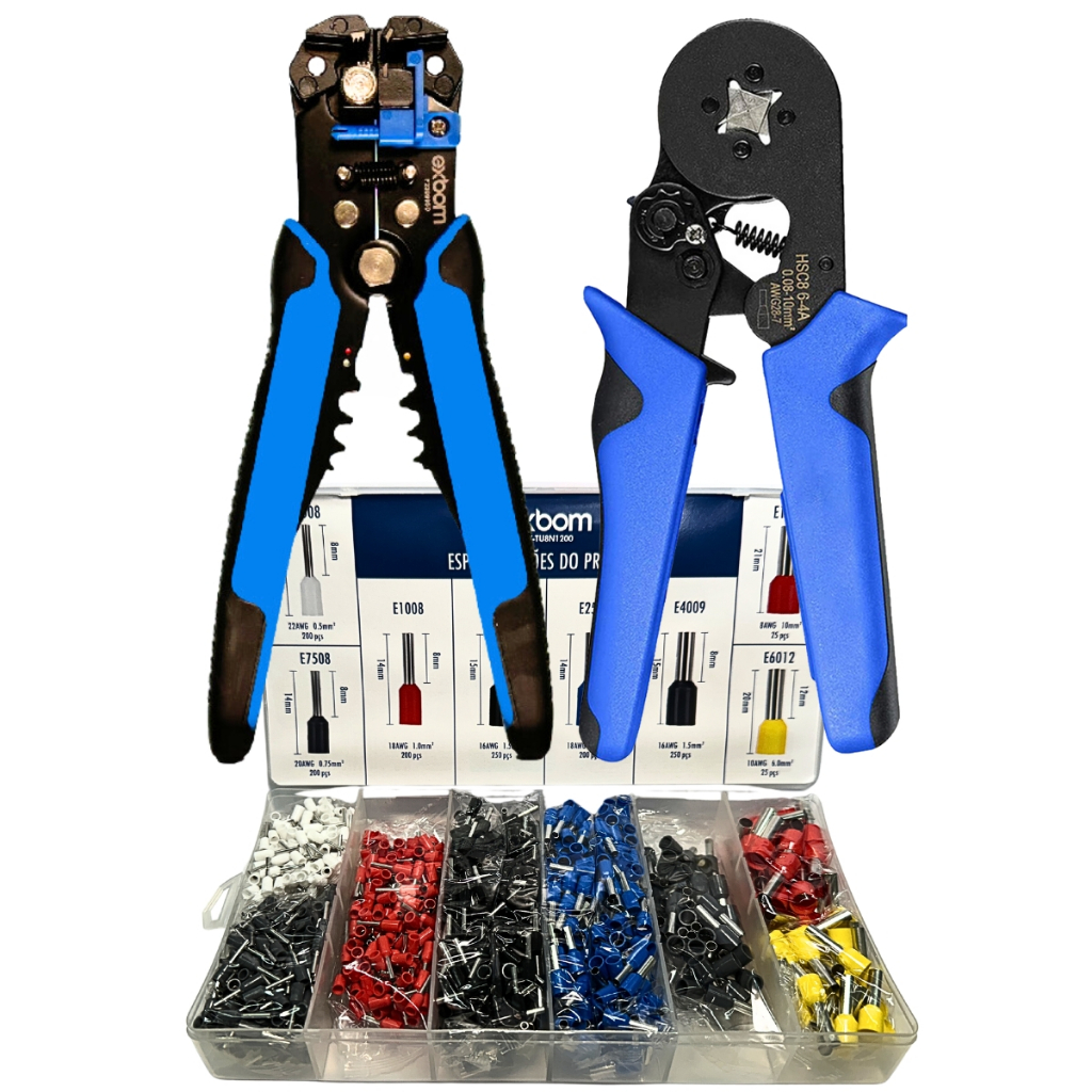 Kit Eletricista Alicate Decapador e Crimpador com Box Terminal Ilhos