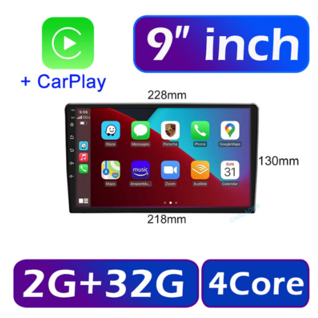 Central Multimídia Tela Vidro 9 Polegadas Android 12 Carplay sem Fio 2Din Bluetooth GPS Wi-FI 2GB