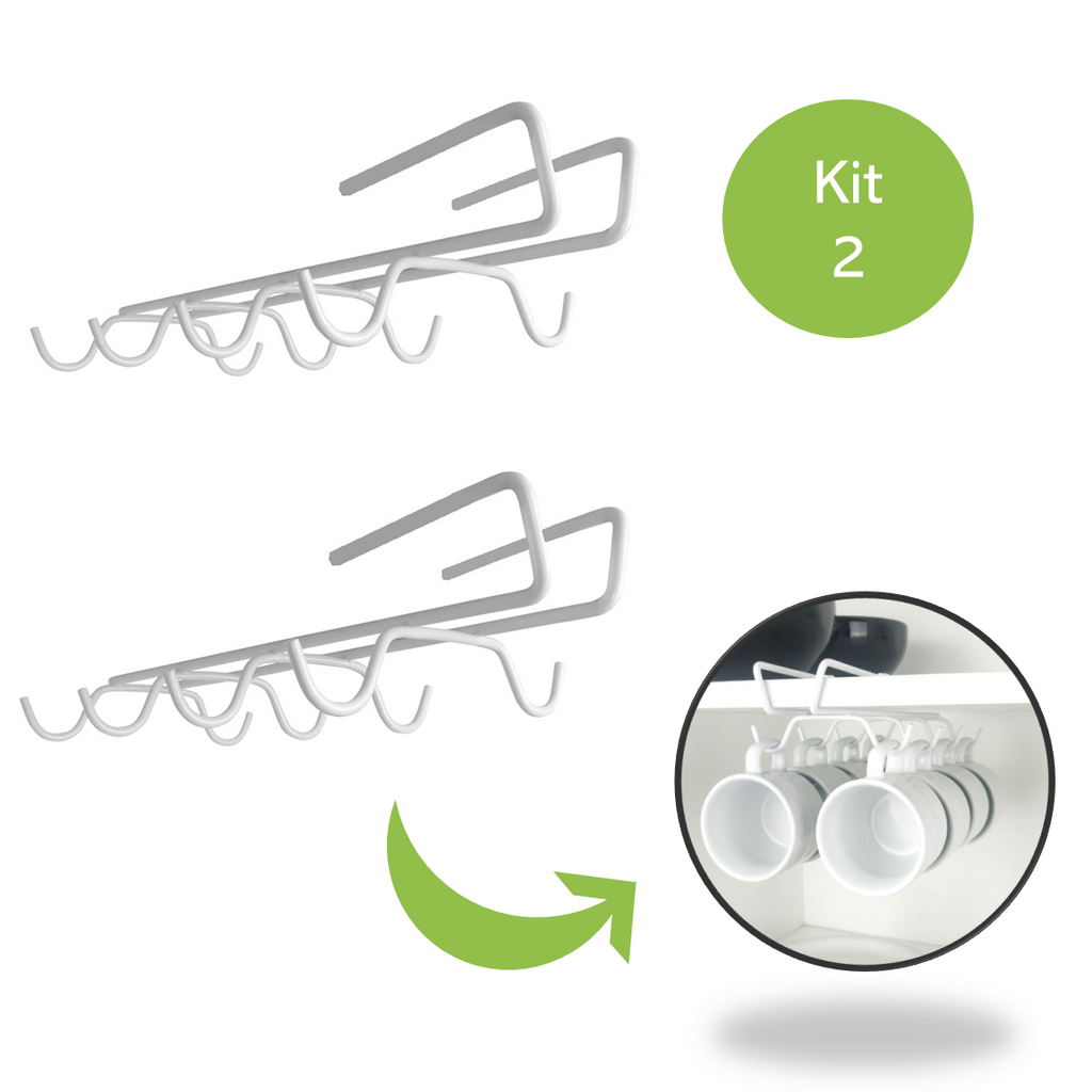 Kit 2 Porta Xicara Suporte Organizador Armario Cozinha Br
