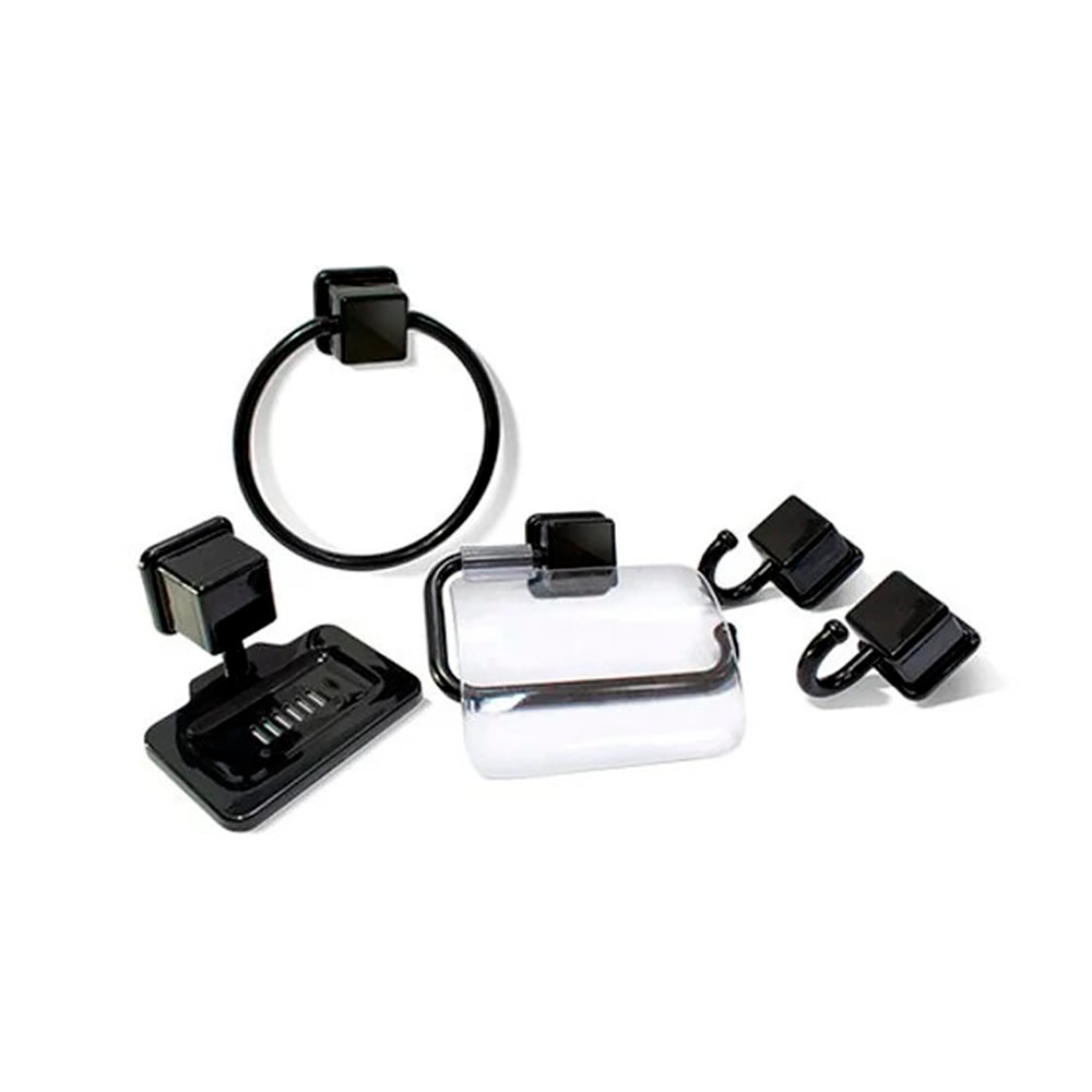 Kit De Acessório Para Banheiro Porta Sabonete Porta Toalha Utensilio de Decoraçao Para Casa - 5 peças Preto