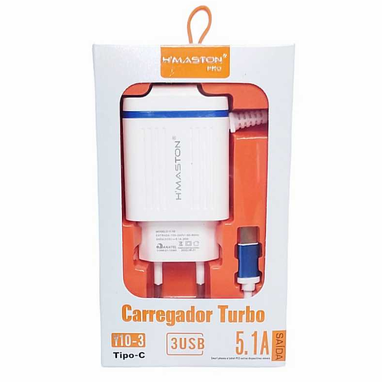 Carregador Android Turbo 5.1 Tipo C 3 Usb H' Maston