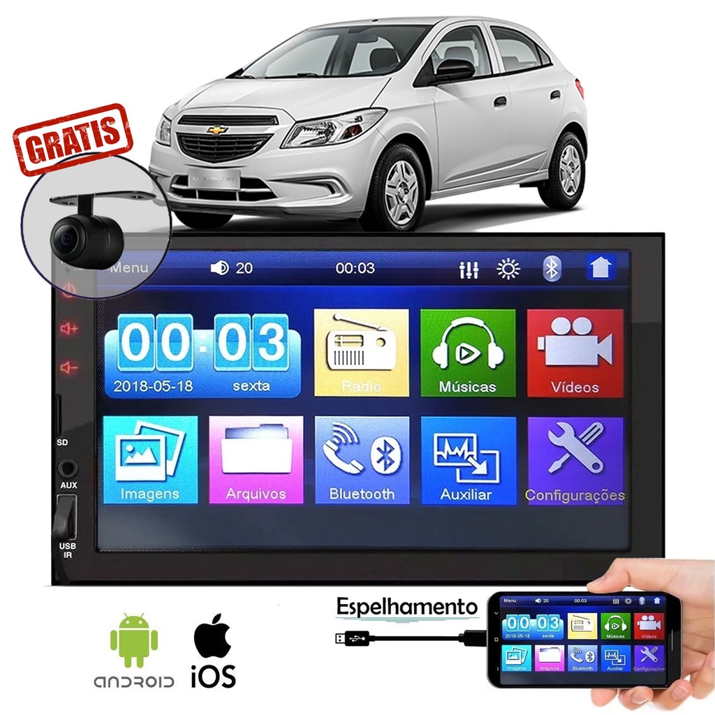 Central Multimídia Mp5 Onix Joy 2012 2014 2015 2016 2017 2018 2019 Câmera Ré Bluetooth Espelha Kit