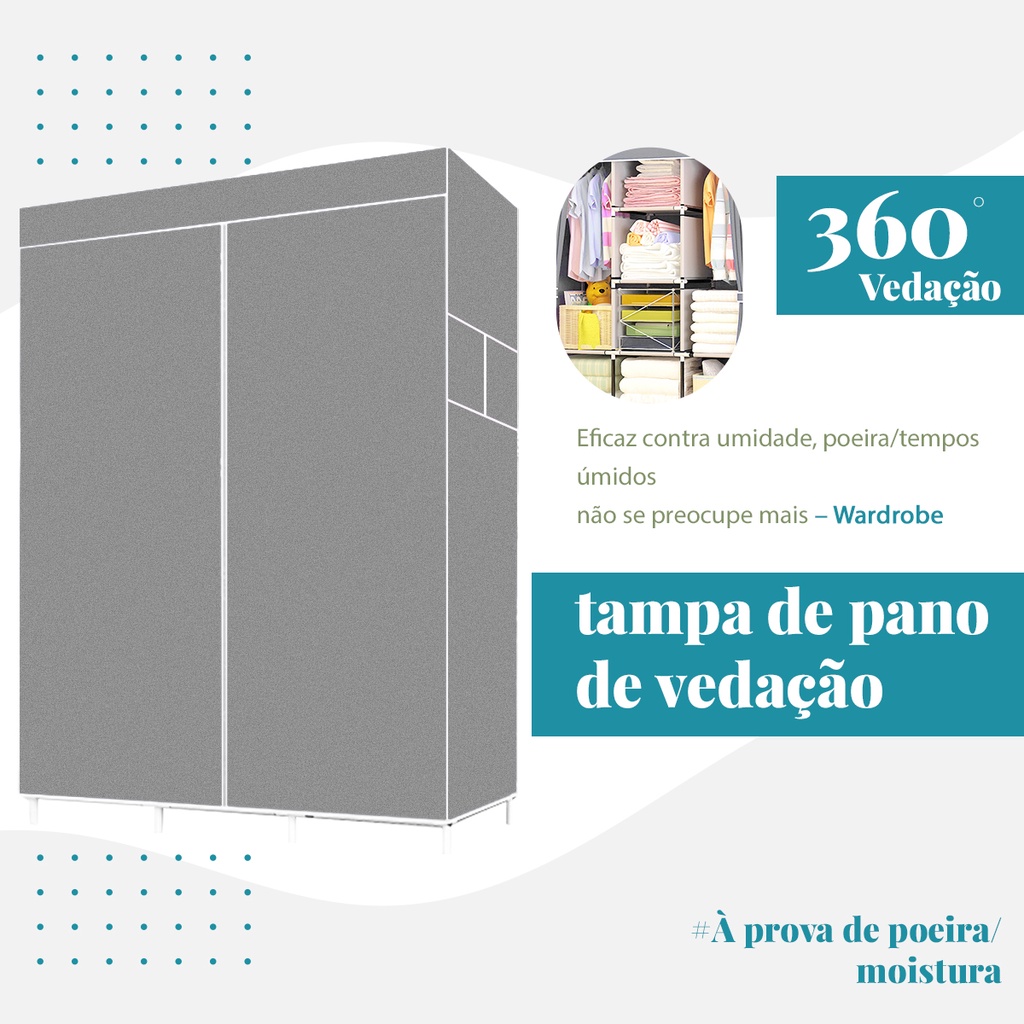 Guarda Roupa Portatil Organizador Dobravel 3 ou 2 Portas com Fechamento de Ziper - Azul
