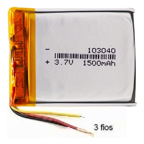 Bateria Com 3 Fios 103040 3,7v 1500mah 10mm X 30mm X 40mm