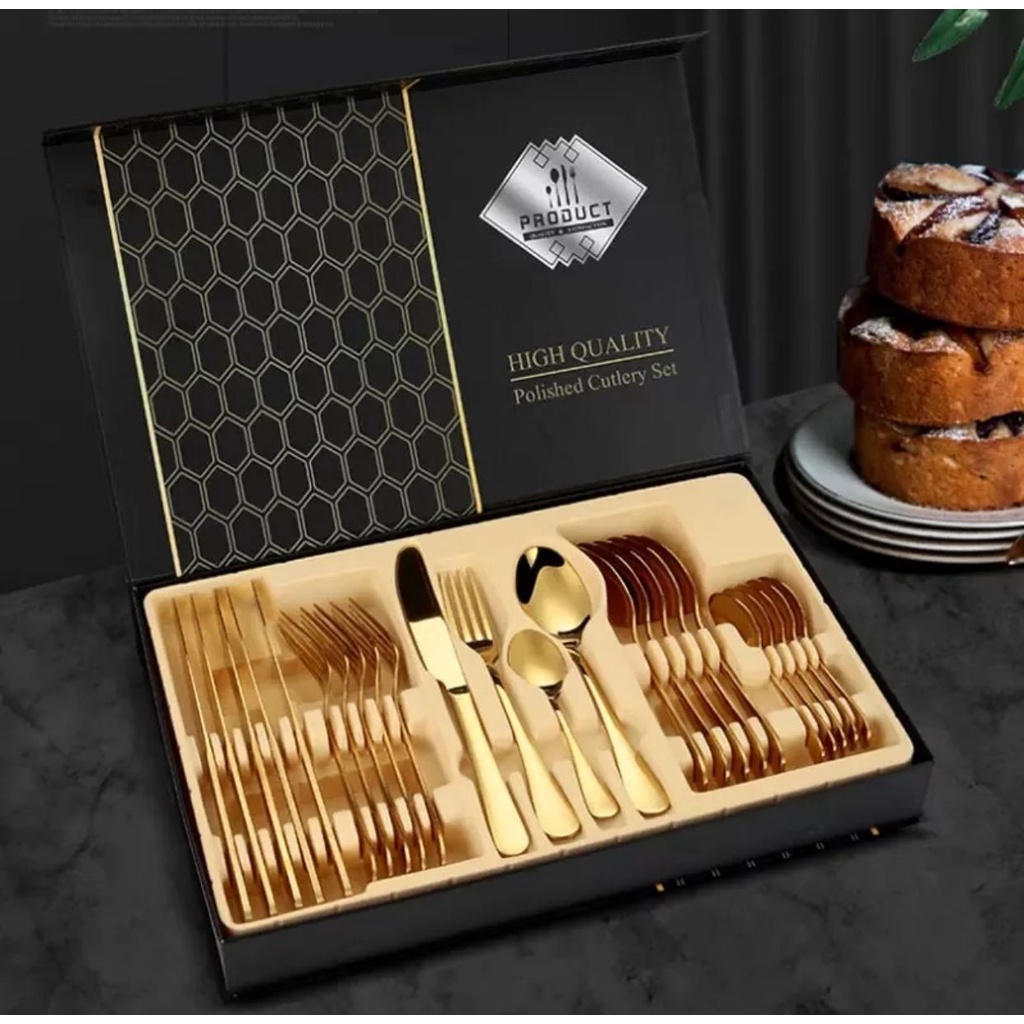talheres dourados premium kit 24 peças em aço inox jogo de talheres