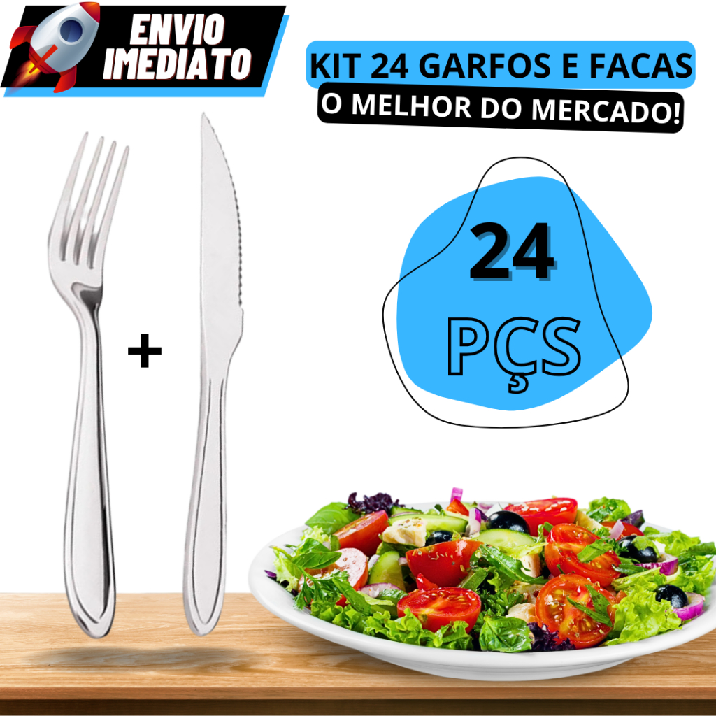 OFERTA Kit 24 Talheres Garfos e Facas 100% Em Aço Inox Premium Alta qualidade Para Restaurantes e Estabelecimentos