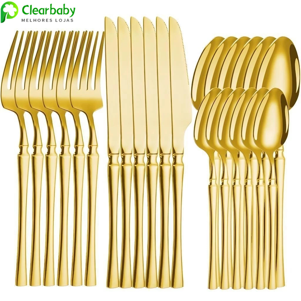 Kit Talheres 24 Peças Luxo | Garfos, Facas e Colheres em Aço Inoxidável Dourado