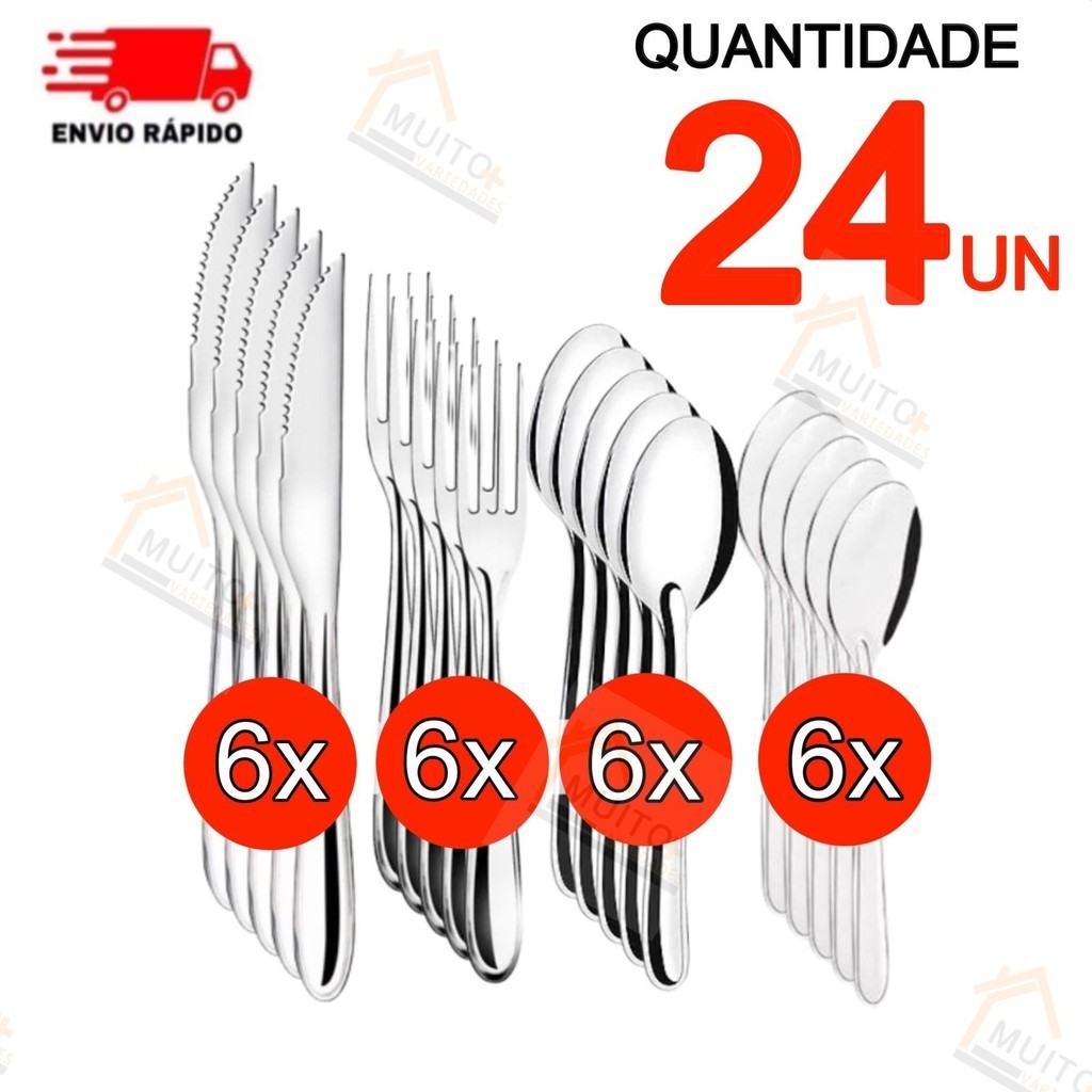 talheres kit talheres 24 Peças Slim Em Aço Inox Premium Importado