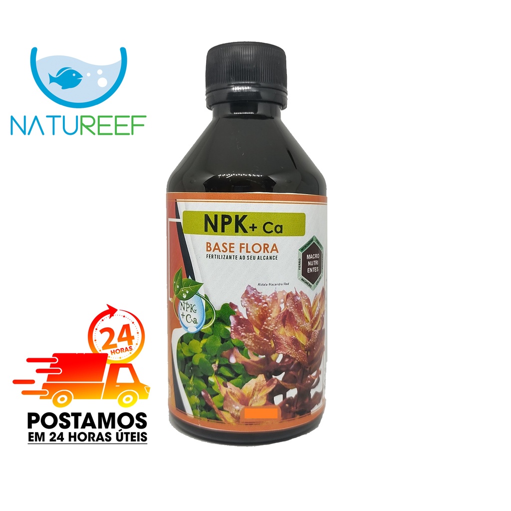 Fertilizante NPK+ Ca Base Flora 250ml P/ Aquário Plantado - enriquecido com Ferro, Cálcio e Magnésio