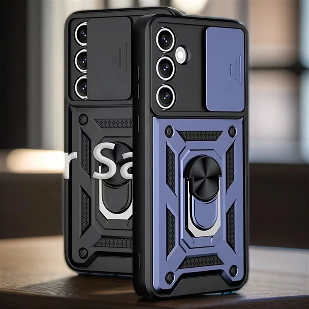Capa Da Armadura À Prova De Choque Para Samsung Galaxy S24 S23 FE S24 Ultra Plus M15 M35 M55 A05S A05 A15 A25 A35 A55 A04 A14 A24 A34 A54 Suporte Lente Câmera Deslizante Tampa Traseira Do Telefone