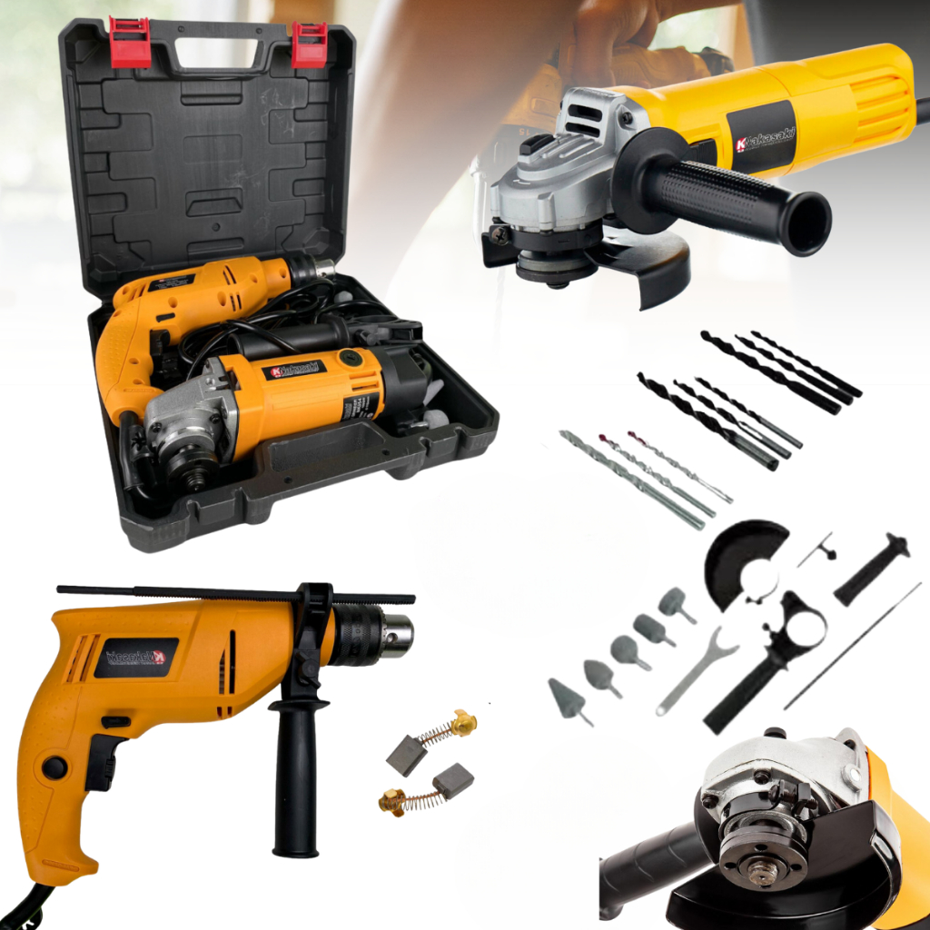 Kit Lixadeira Esmerilhadeira Angular Furadeira de Impacto 10mm e Maleta de Transporte Com Acessórios