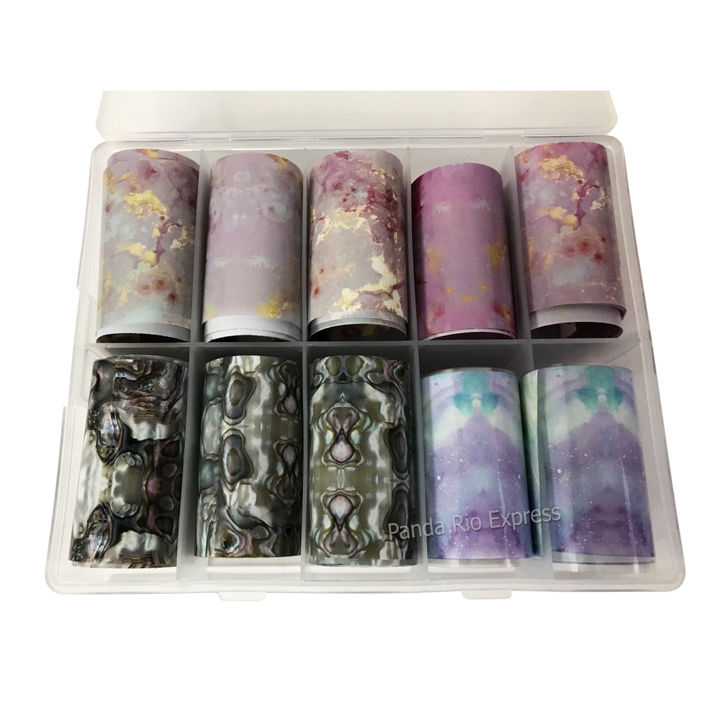 Kit Caixa Com 10 Rolos De Fita Foil Para Decoração De Unhas Nail Art Foils Manicure