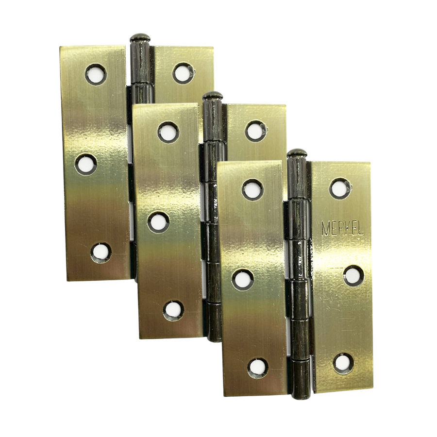 Kit de Dobradiças Para Porta com 3 unidades Merkel Bronze Flo dourada 3.1/2