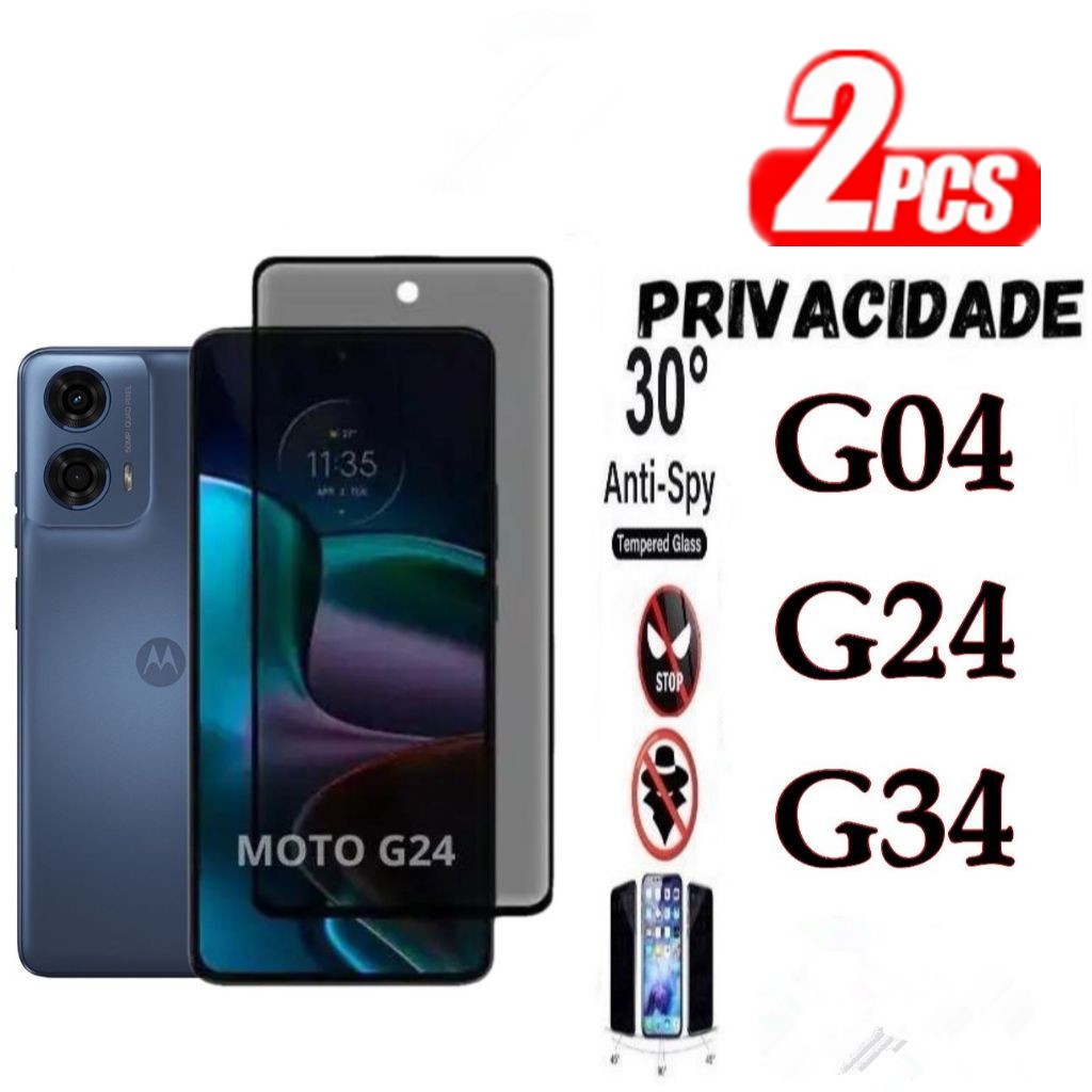 KIT 2 Película Privacidade 3D Anti Spy MOTO G04 G24 G34