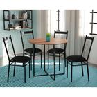 Mesa de Jantar Redonda 80x80cm com 4 Cadeiras Estofado Preto Estela Estilo Industrial