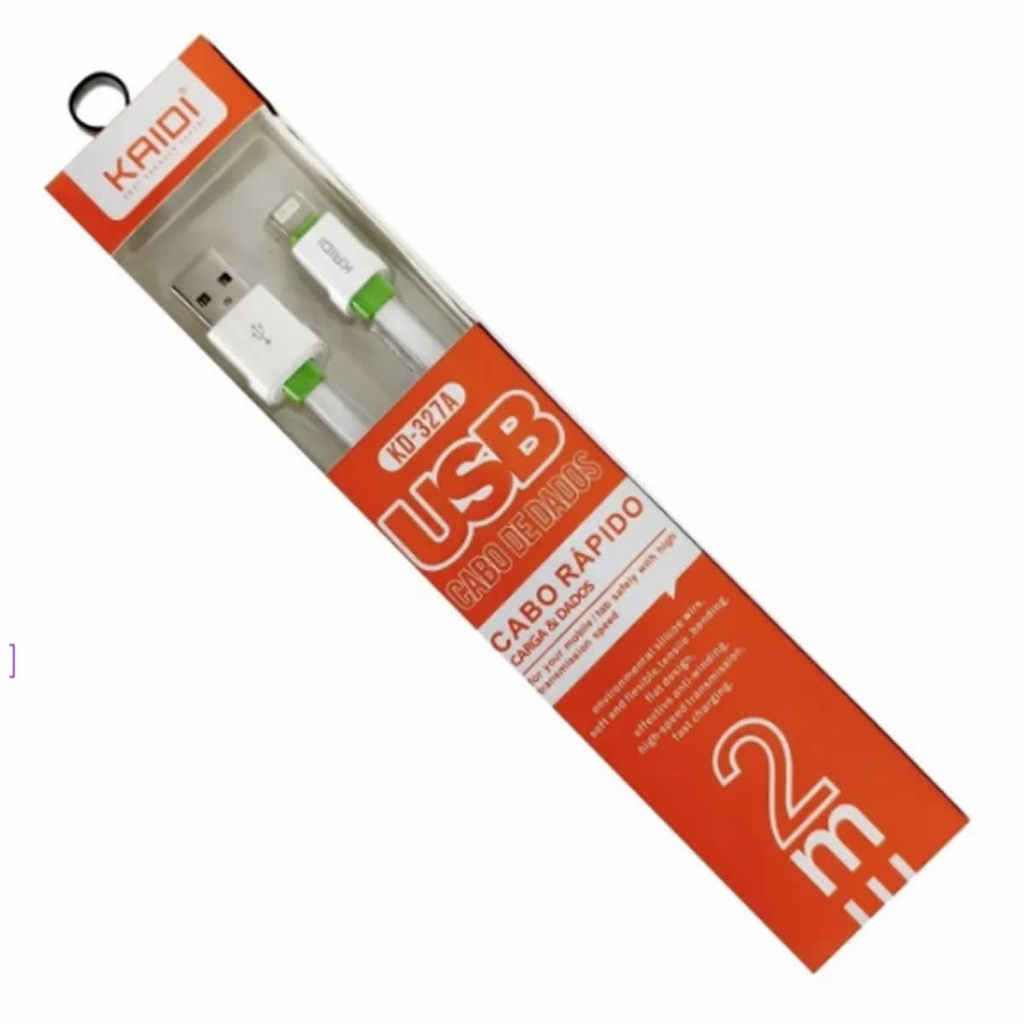 Cabo 2 Metros Carga e Dados Iphone Kaidi Kd-327A IOS Turbo Carregador Dois metros Lightning Celular