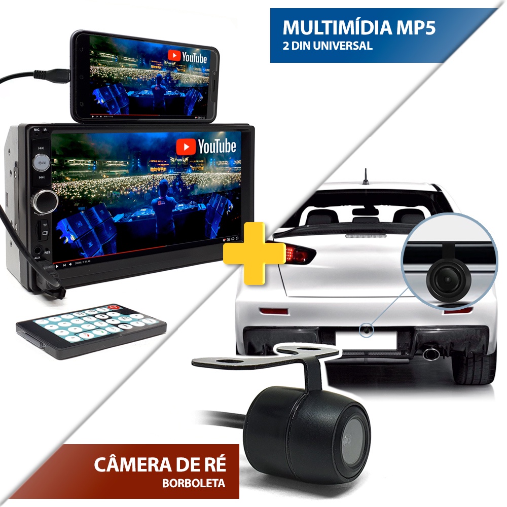 Kit Central Multimídia + Câmera de Ré Chevrolet Corsa Classic 2012 2013 2014 2015 2016 Bluetooth Espelhamento USB Touch 2 Din MP5 SD 7 Polegadas