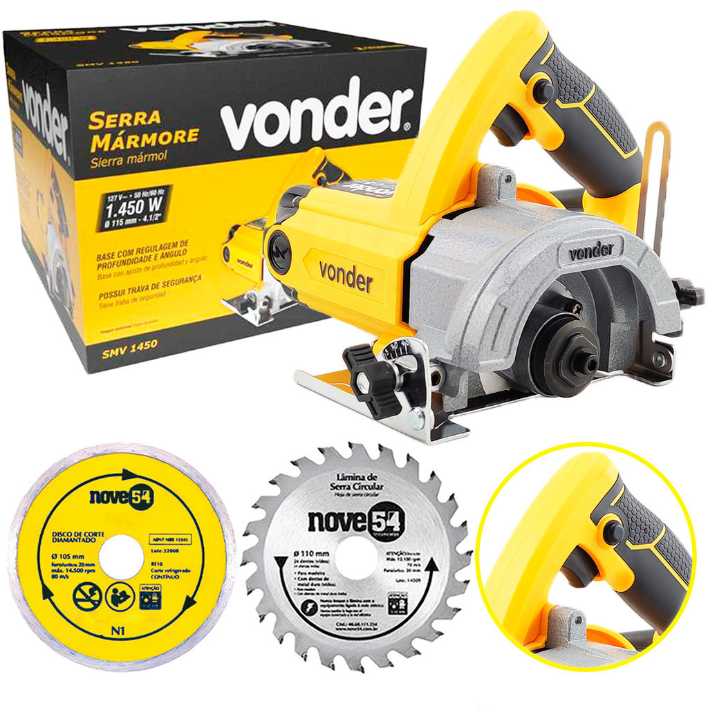 Serra Mármore Profissional Tipo Makita Bosch Vonder Smv1450 + 2 Discos De Corte - Madeira, Concreto
