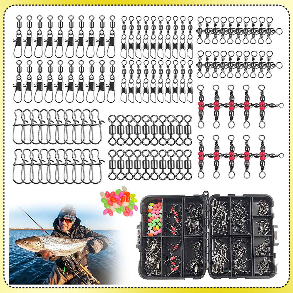 140 Giratórios de anzol Giratórios com rolamento de esferas Acessórios de pesca Pinos Contas com caixa de armazenamento