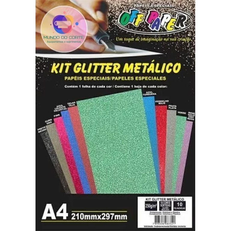 Kit Papel Glitter Metálico 10 cores 250g Off Paper