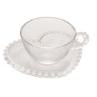 Kit Jogo 4 Xícaras 180ml de Chá Café Grande com Píres Redondo de Cristal Pearl Bolinhas Wolff Transparente