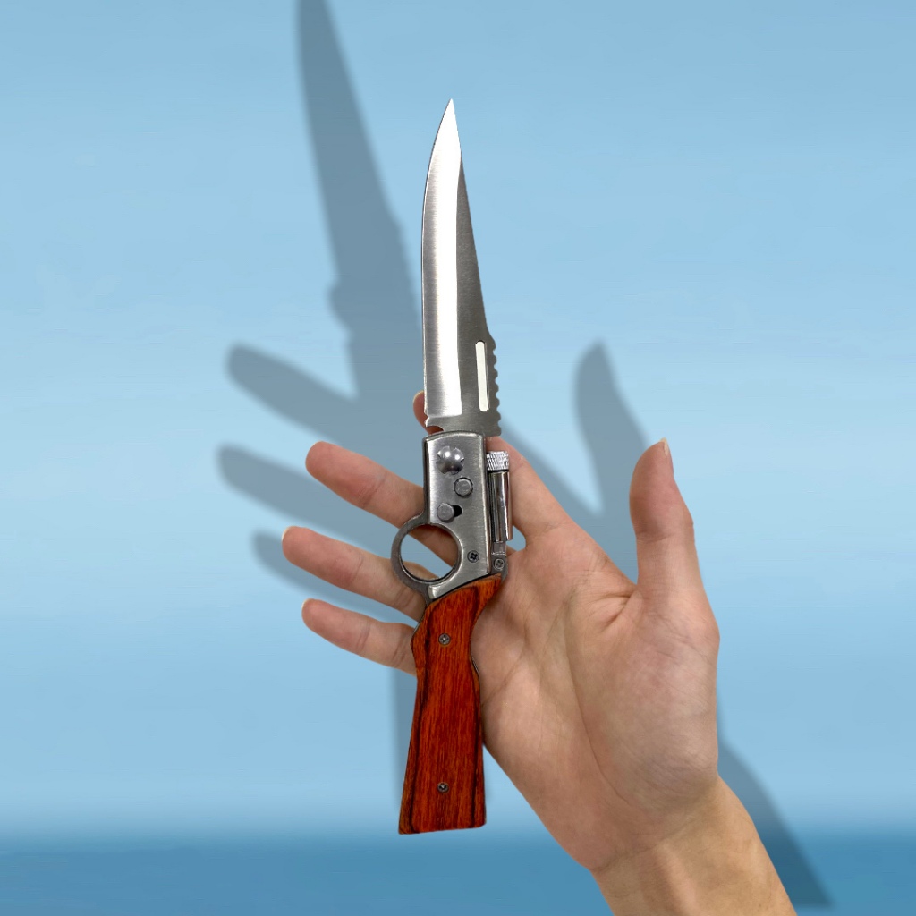 Canivete Automatico 25cm Saque Rapido Com Travar Clipe Caça Pesca Cozinha Com Mini Lanterna