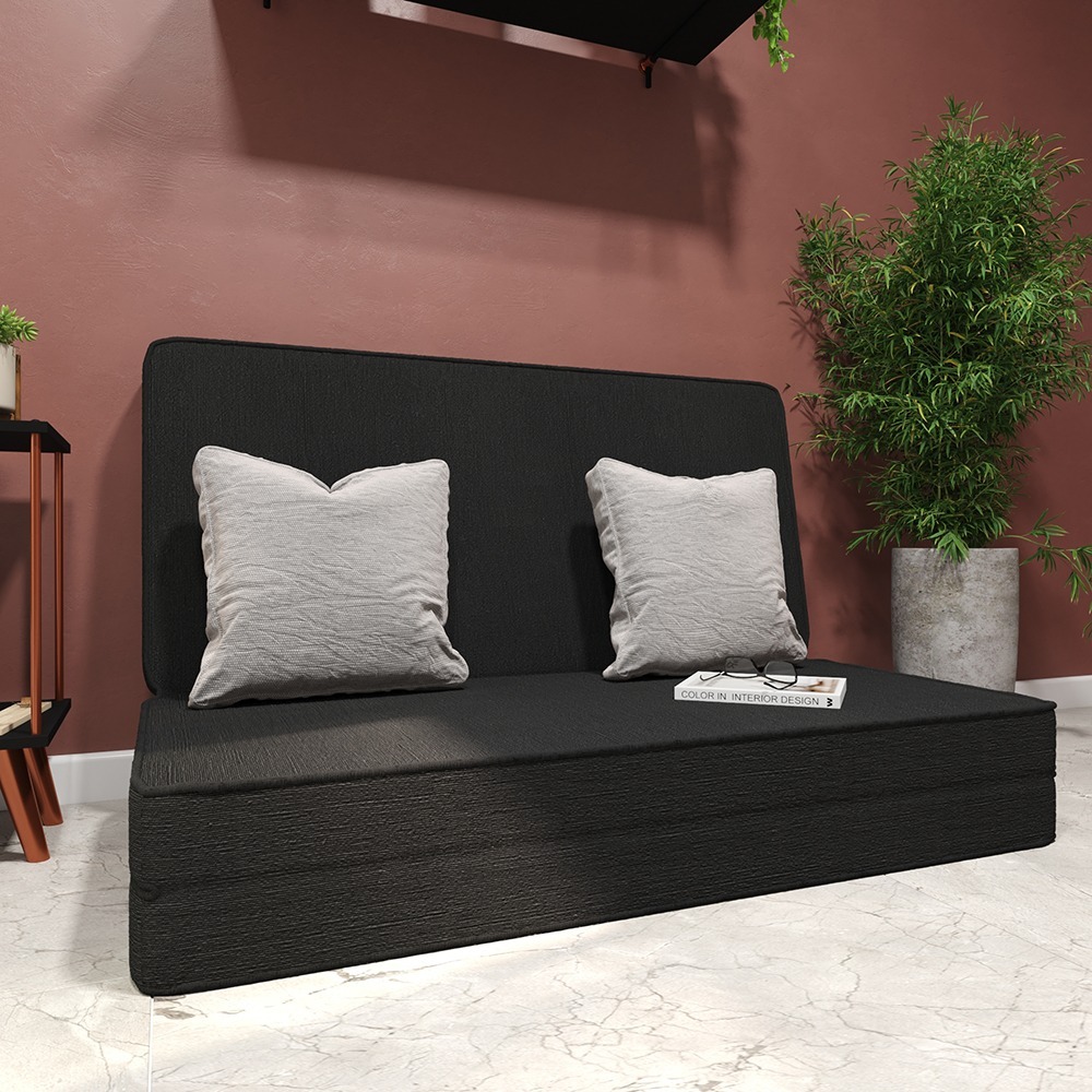 Sofá 3 em 1 Colchão Casal Puff Multiuso Preto Macio para Quarto e Sala, Ideal para Visitas - Bonatto
