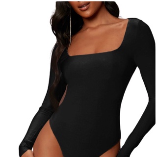 Body Feminino Decote Quadrado Manga Longa Suplex Liso