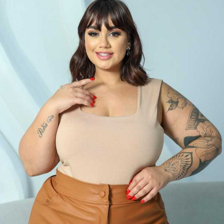 Body Feminino Alça Larga Decote Quadrado Plus Size Bori Elegante Suplex Estiloso Tamanho Grande Oferta Blogueira P006