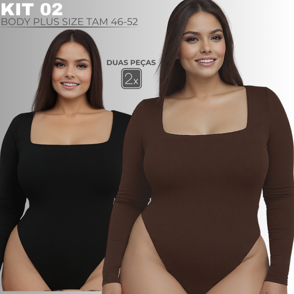 Kit 2 Body Feminino Plus Size Manga Longa Bori Suplex Decote Quadrado Inverno Bory Tamanho Grande
