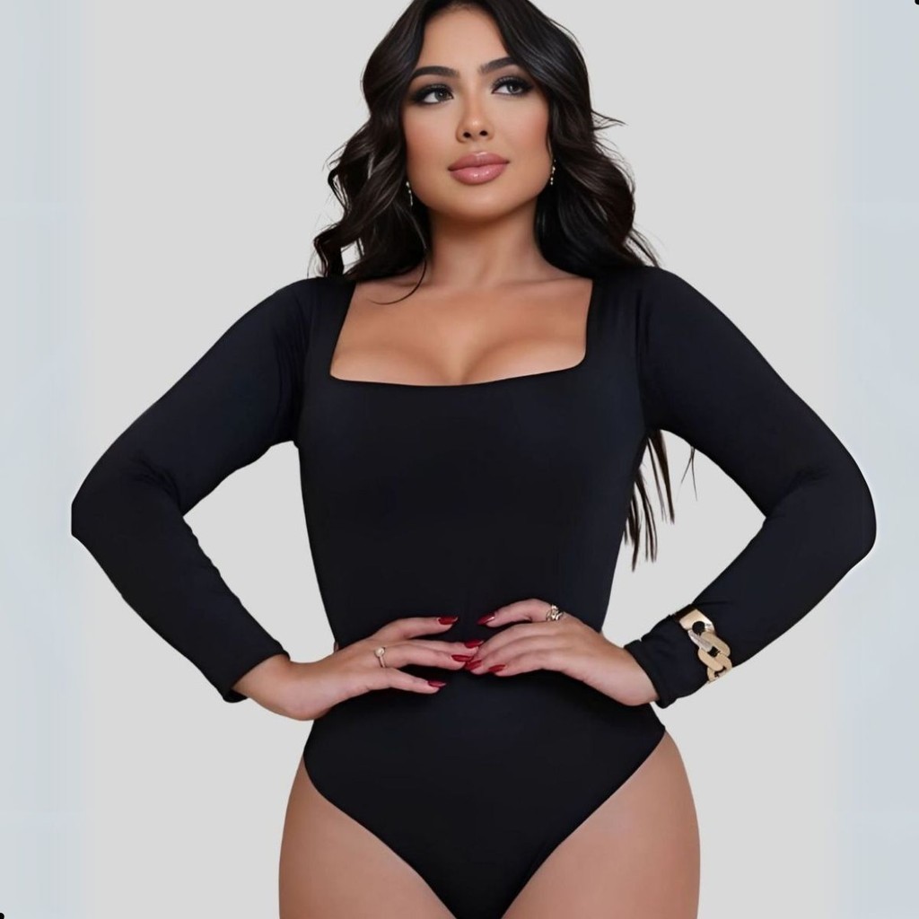 Body Feminino Decote Quadrado Manga Longa Bori Collant Suplex Blogueira